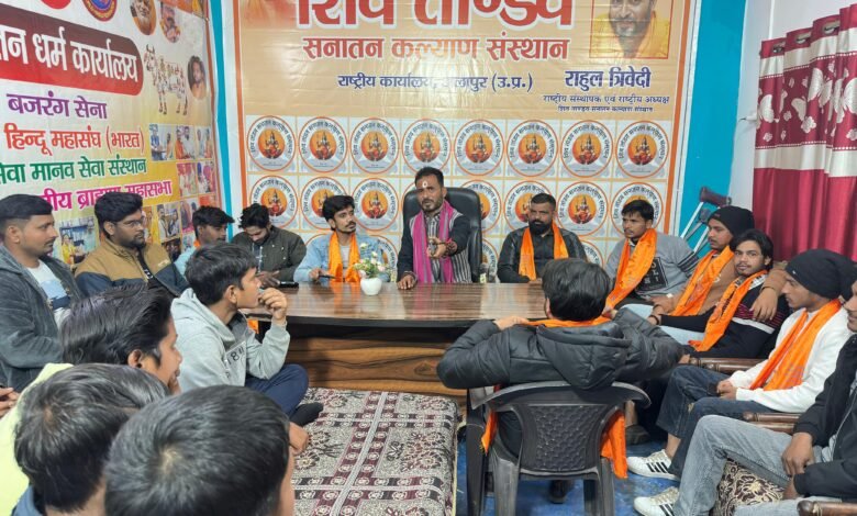 शिव तांडव सनातन कल्याण संस्थान के राष्ट्रीय कार्यालय पर एक मीटिंग का आयोजन किया गया जिसमे शिव तांडव सनातन कल्याण संस्थान के संस्थापक एवं राष्ट्रीय अध्यक्ष राहुल त्रिवेदी ने अपने विचार रखें उन्होंने कहा प्रयागराज के माघ मेले मे शंकराचार्य स्वामी अविमुकतेश्वरआनन्द जी को पुलिस द्वारा अपमानित किया गया यह बहुत ही निंदनीय हैं हमारे सनातन धर्म मे कमसेकम भगबे और संतो का सम्मान तो करलिया जाता और गौमाता की दुर्दशा को देखते हुए गौमाता को राष्ट्रीय दर्जा दिलाने के लिए 15 फरबरी से 20 फरबरी के बीच मे मुख्यमंत्री आवास लखनऊ पर शांति पूर्वक तरीके से कमसेकम 1000 कार्यकर्तायों पदाधिकारियों के साथ अनसन पर बैठा जायेगा जबतक न्याय नही मिल जाता तबतक।